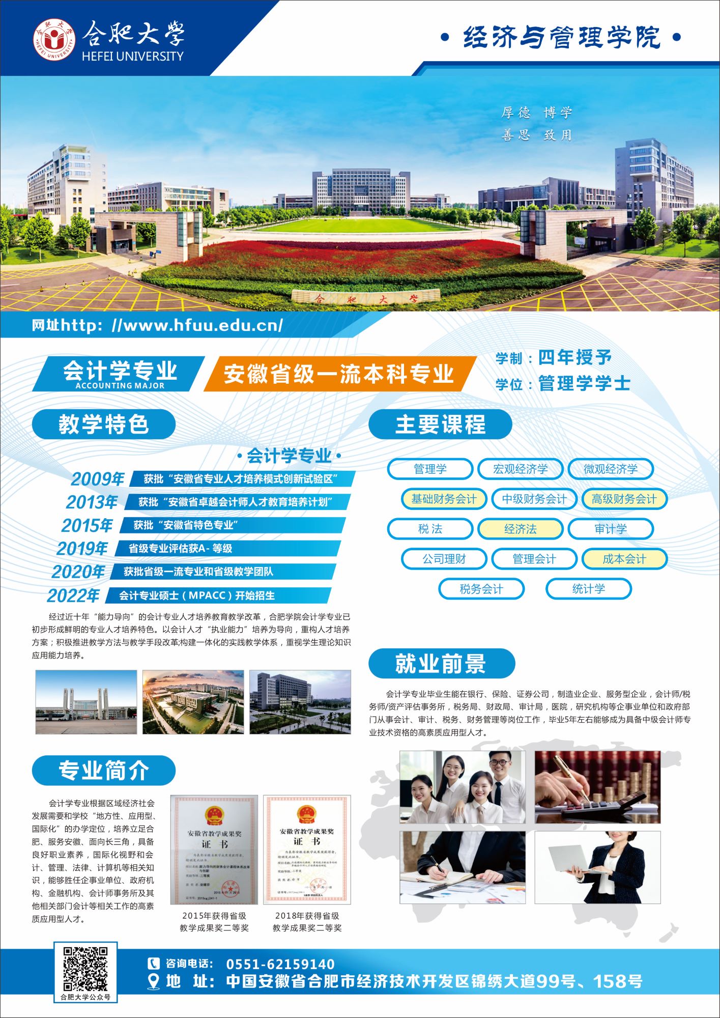 毕业生发展方向:毕业生可在生产型企业,商品流通企业,银行、证券、保险等金融企业,会计师事务所等专业服务机构以及行政事业单位从事会计、财务管理、成本管理、审计或专业咨询、服务等工作;也可继续攻读硕士学位研究生或出国深造。